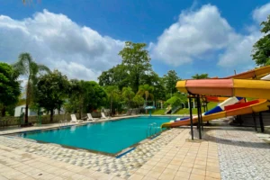 Rustic riverside resort with village charm, modern comforts, lush views, pool, wellness, and gourmet experiences.
